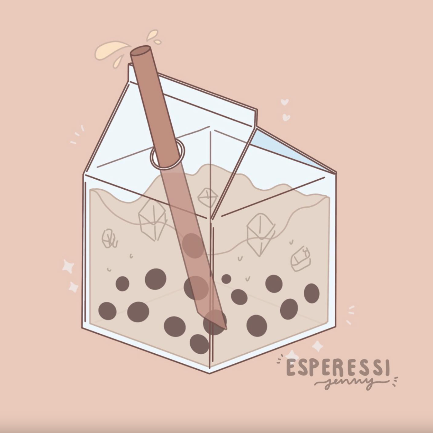 Working at a boba shop for 3 years, I wondered how I could take something I see in everyday life and make something creative out of it. I aimed to use an isometric view of milk tea with boba in a carton, and ended up with a very fun and cute design!