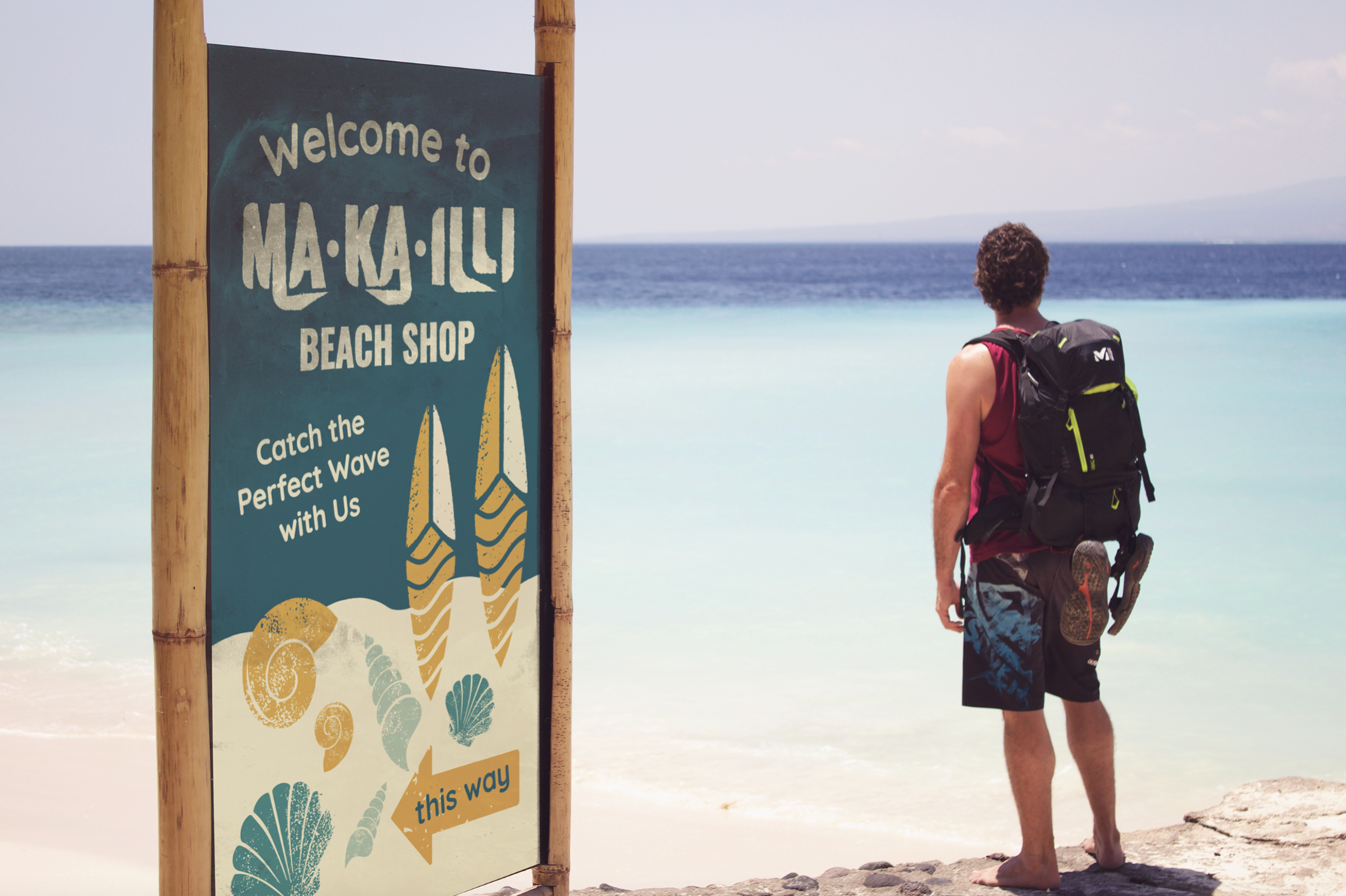 Makailli is a beach shop that sells surfing gear, swim clothing, and even offers ocean safety resources. Along with my groupmates, we decided to create and brand a new beach shop to test our creative abilities. Creating ephemera and signage to match the atmosphere, we incorporated texture throughout our designs to create the ultimate beachy vibe.